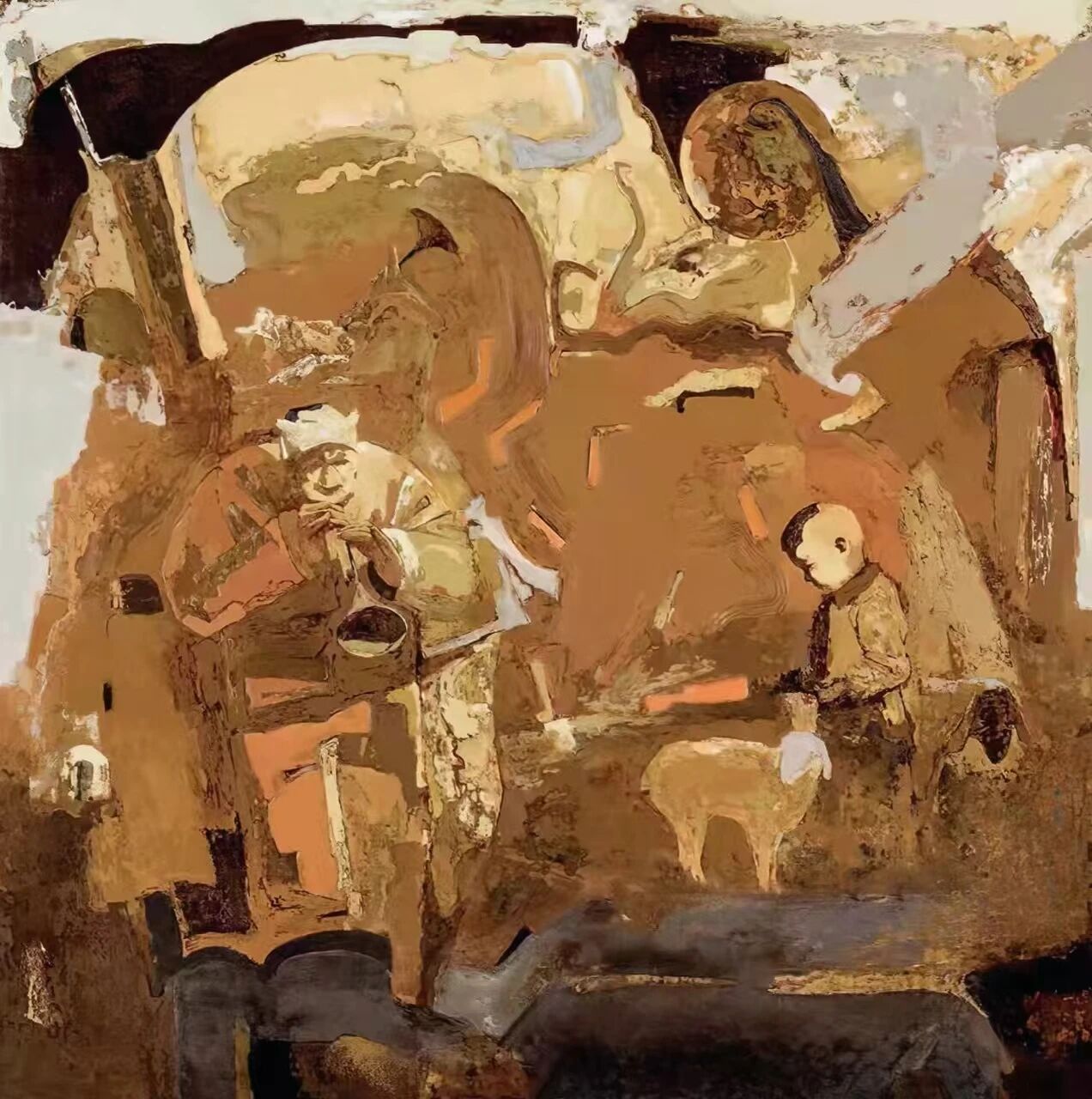《黄土情愫》 宋伟 漆画 200厘米×200厘米 2019年 入选第十三届全国美术作品展