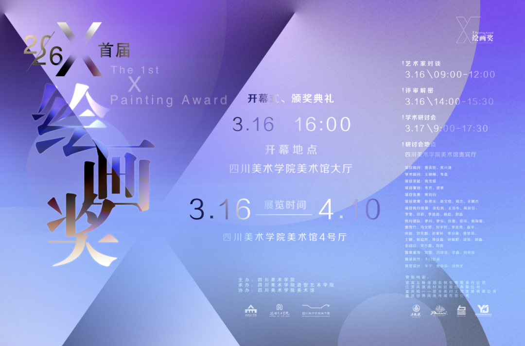 作为聚焦当代绘画前沿探索的重磅奖项,本届以「寻找最好的绘画」为宗旨,从 730 余位艺术家投稿中,最终遴选出25 位入围创作者,并现场揭晓 5 项 TCPA 大奖与 20 名入围奖。 奖项亮点 「X 」象征未知与无限,奖项拒绝单一标准,从绘画本体、技术、语言、实验、观念五大维度,全面呈现当代绘画的多元生态。 绘画艺术大奖:李帅——以纯粹笔触,沉淀二十余年创作思考,回归绘画本质。 技术表现奖:孟思特——以精湛技法,拓展绘画媒介边界。 语言创新奖:陈枫婷——重构视觉语言,探索绘画表达新范式。 实验精神奖:鞠腾——以「五行」为媒,融合东方哲学与当代媒介,突破传统符号表达。 观念表达奖:曾九间——以作品回应时代议题,赋予绘画深度思想内涵。 展览现场 展览信息 展期:2026 年 3 月 16 日 —4 月 10 日 地点:四川美术学院美术馆 4 号厅 观展:免费开放,无需预约 -END- |